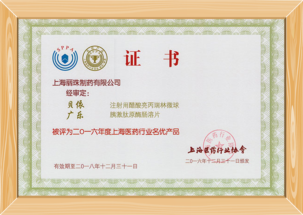 1999年,丽珠集团开始了“注射用醋酸亮丙瑞林微球”产品的申报,历时10年,于2009年8月获得生产批件,2010年正式上市销售,掀开了丽珠集团发展长效缓释制剂技术新篇章。该产品先后获得“上海市医药行业协会名优产品”,“2018中国化学制药行业优秀产品品牌奖”,“2018年度中国最具创新力制剂品种”等荣誉。2024年,曲普瑞林微球(一个月)项目获批生产。